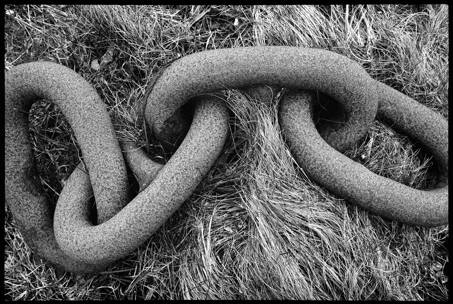 It was a gray day in March. The clouds were coming down the hills. My mood was as misty as the weather. One of these days when I make photos, feeling that I don’t manage to achieve much. A fine drizzle started to fall. The wind began to pick up. The next front was moving in from the Atlantic. Soon it would be too wet to take my old film camera out of the bag. I walked down to a small pier in West Tarbert, took photos of the pier and the landscape. Walking back to the road I knew, I had not managed to capture the essence of this place. Suddenly it struck me, that focusing on the landscape I had noticed but overlooked the old chains behind the workshop. I went back and was struck by the beauty of these chains in the grass. I shot half a film. This photo captures the heart and beauty of the place - for me.